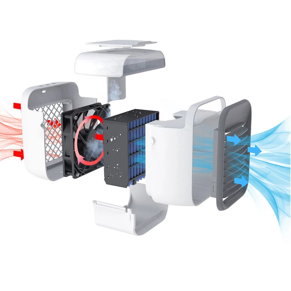 Qinux Airgo pulls hot air in through the back of the device and transforms it into a refreshing, cooling mist for instant relief from the sweltering heat.